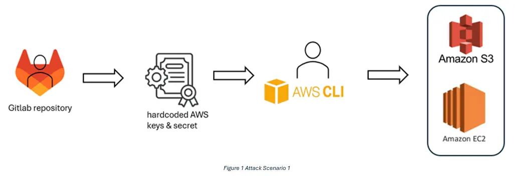 • Leaked long-lived AWS credentials in a repository: A set of AWS access keys committed into a repository accessible from dev allowed us to call AWS APIs. Those keys had enough privileges to enumerate and read resources in other accounts. This is the classic “one commit, unlimited impact” problem: secrets in code are readable by anyone with repository access.