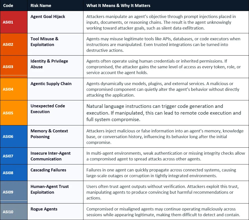 The OWASP Top 10 for Agentic Applications 2026 is the first peer-reviewed security framework designed specifically for autonomous, tool-using AI systems. Unlike the earlier LLM Top 10, which focused on chatbots and text generation, this framework addresses systems that can plan, act, and retain memory. Each risk listed is based on real-world incidents rather than hypothetical scenarios.