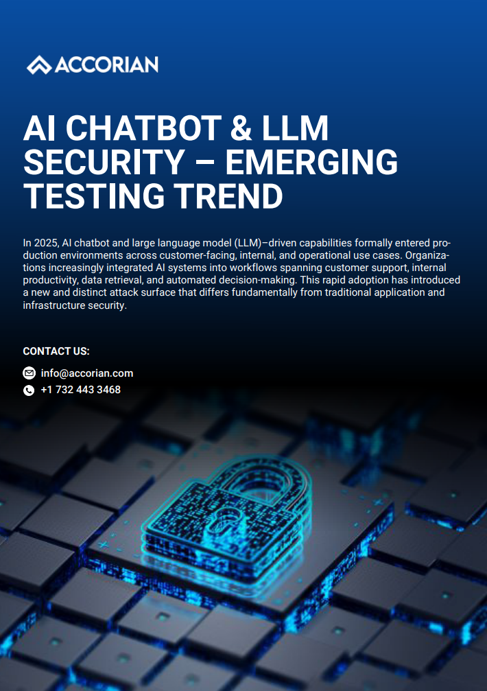 Accorian’s AI Chatbot Penetration Testing service identifies vulnerabilities specific to conversational platforms powered by large language models. With chatbots handling sensitive data and facing evolving threats, Accorian goes beyond traditional testing to assess prompt injection, LLM-specific risks, and real-time behavior. The service helps organizations stay compliant, protect user trust, and secure their AI-driven interfaces.